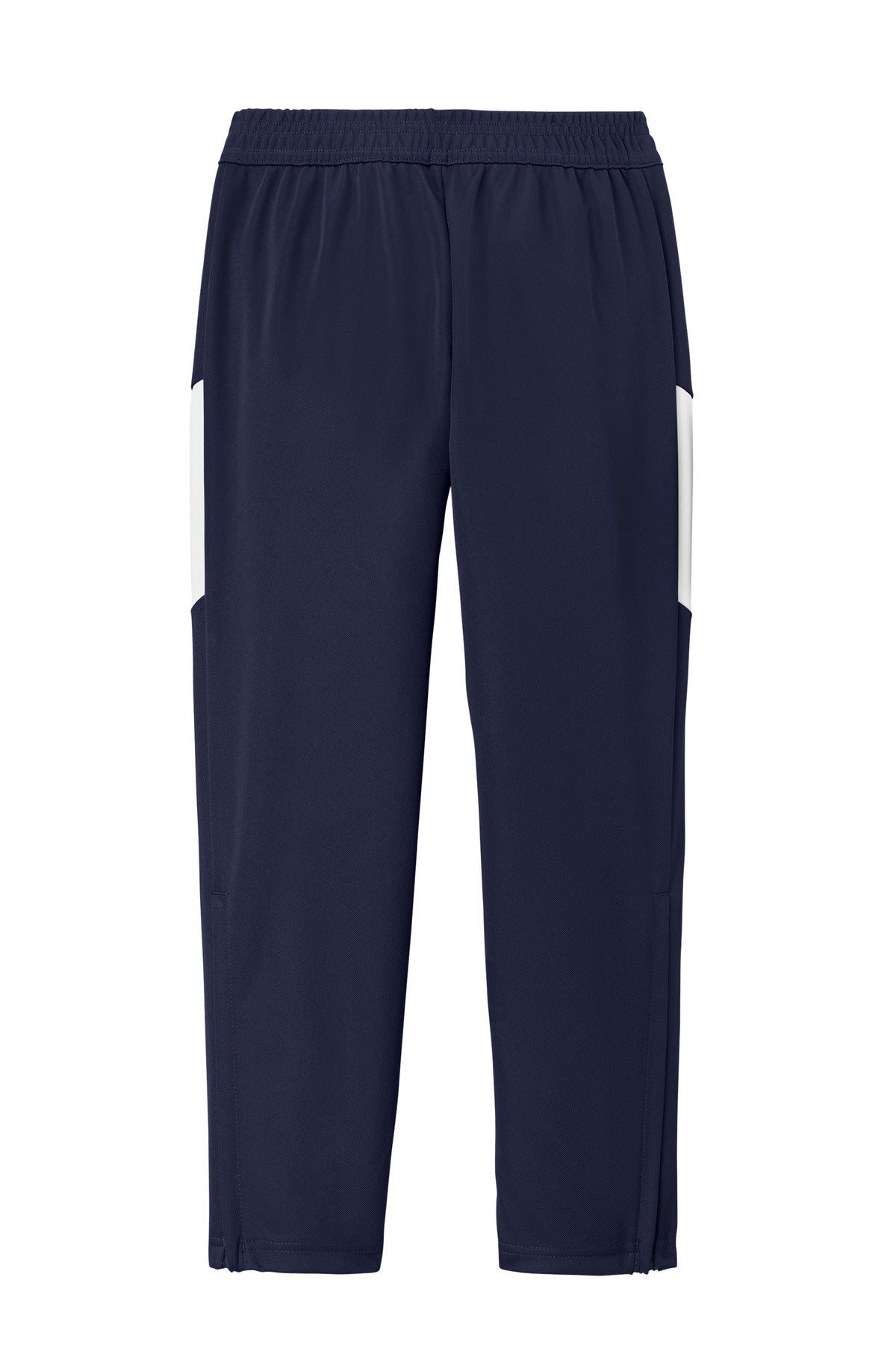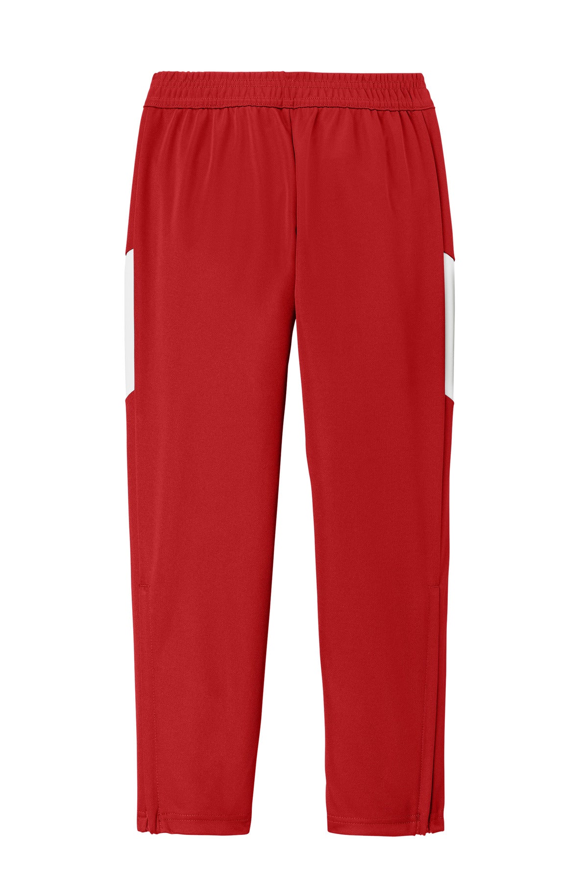 The ball is in your court with the moisture-wicking pant that is perfect for warming up or supporting the team. 100% recycled polyester double knit Tag-free label No drawcordSide slash pockets Tapered leg with extended side zipper for easy removal Colorblock self-fabric detail on legs