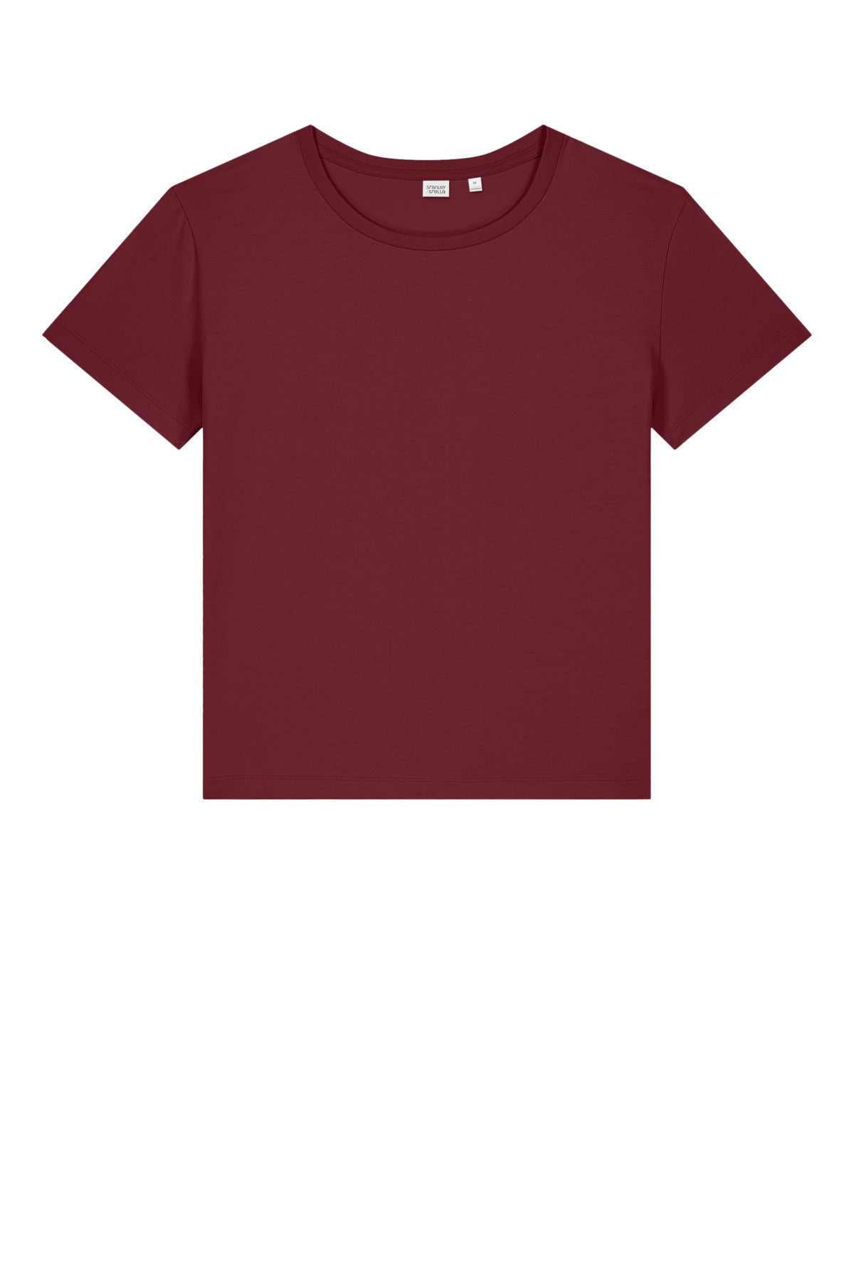 The iconic scoop neck t-shirt for women. Classic style joins reliable comfort with a smooth organic cotton that's good for the environment and presents logos perfectly. 4.6-ounce (155-gram) 100% organic combed ring spun cotton 28 singles 1x1 rib knit neck Self-fabric back neck taping Double-needle topstitched sleeves and hem Medium fit 100% recycled polyester tear-away label